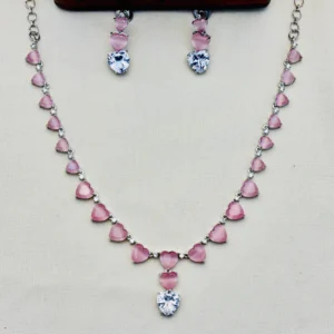 American Diamond Heart Stone Necklace Set – Pastel Pink