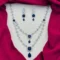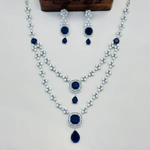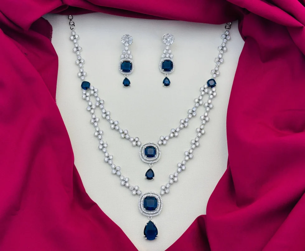 American Diamond Rhodium Silver Plated Two-Layered White and Navy Blue Stone Necklace Set