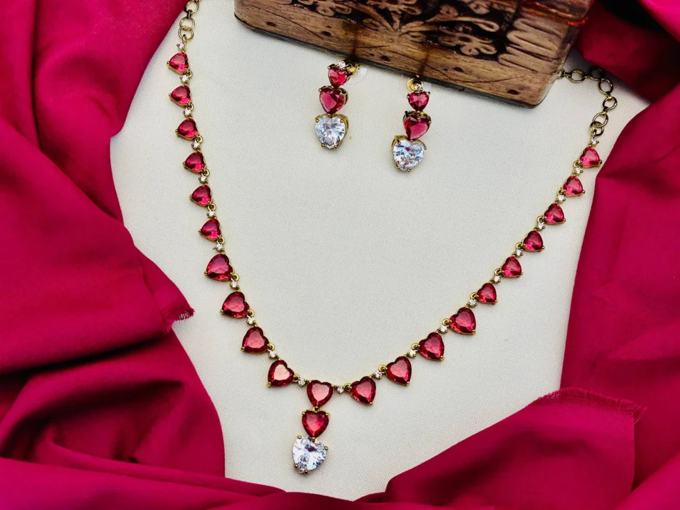 The Victorian Finish Heart Stone Necklace Set in Red is more than just jewelry — it’s a symbol of confidence and elegance. The red stones represent energy and love, while the antique silver tone adds a touch of old-world charm. This balance of bold color and vintage craftsmanship makes it a versatile accessory for both traditional and modern outfits.