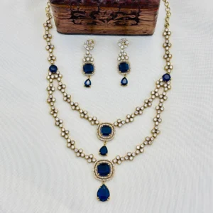American Diamond Victorian Finish Two-Layered Navy Blue Stone Necklace Set