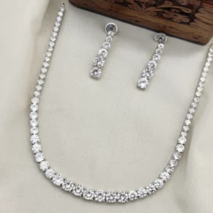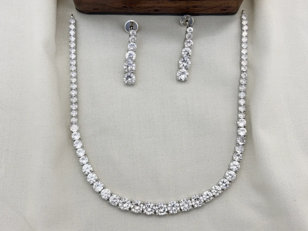 This necklace set features premium-quality cubic zirconia (CZ) stones, known for their diamond-like brilliance. Expertly cut and polished, these stones reflect light beautifully, adding a glamorous touch to your overall look.