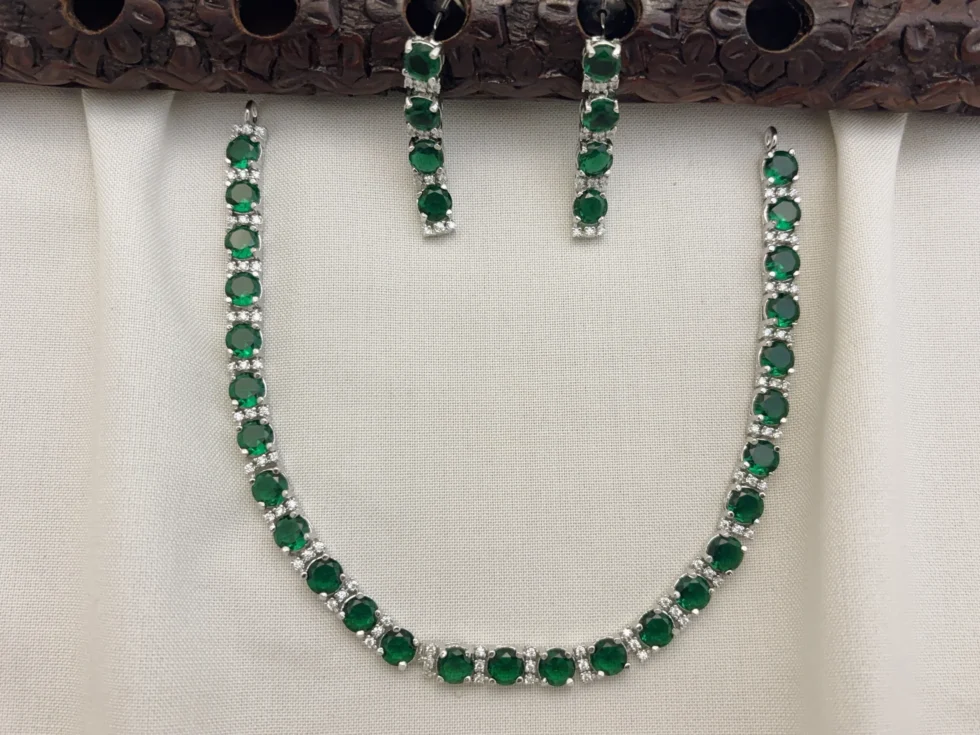 The highlight of this necklace set is its high-quality cubic zirconia (CZ) stones, also known as American diamonds. These stones are carefully cut and polished to reflect maximum light, creating a dazzling sparkle that enhances your natural beauty.