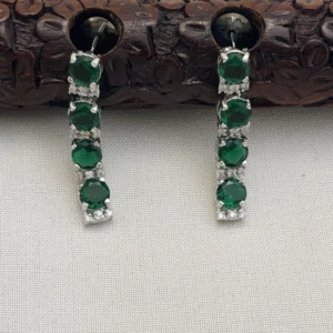 Elegant Silver Polished CZ Stone Necklace Set with Earrings for Women( GREEN) KJ-1104-BE.CA
