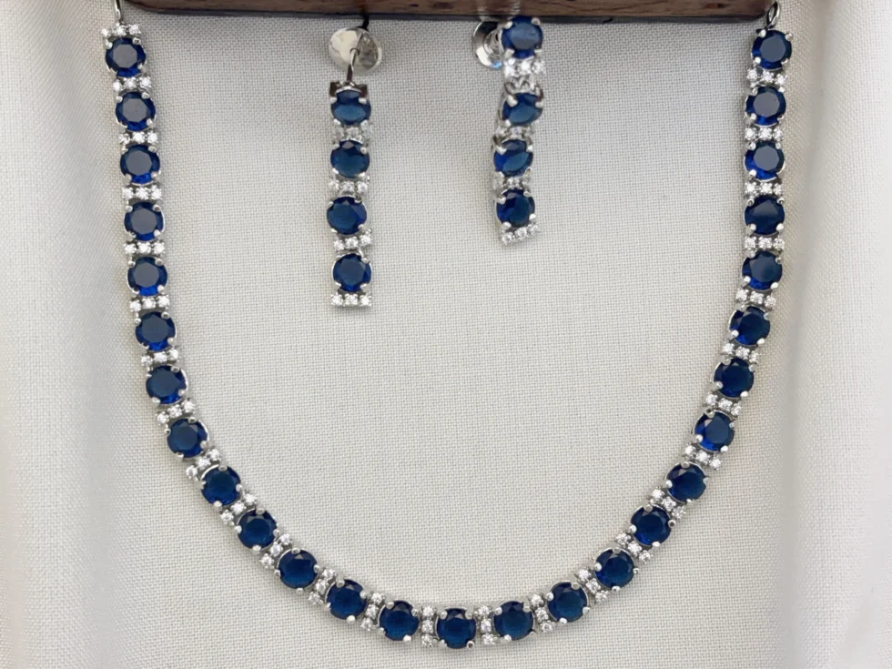The highlight of this necklace set is its high-quality cubic zirconia (CZ) stones, also known as American diamonds. These stones are carefully cut and polished to reflect maximum light, creating a dazzling sparkle that enhances your natural beauty.