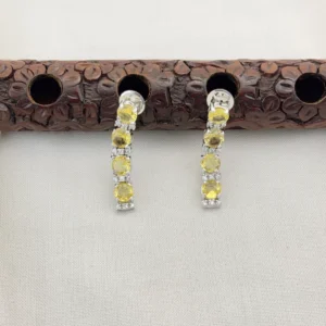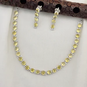 Elegant Silver Polished CZ Stone Necklace Set with Earrings for Women (YELLOW)KJ-1110-BE.CA