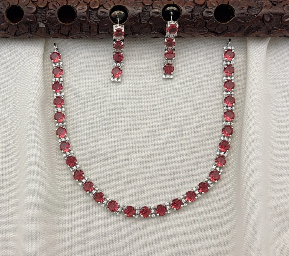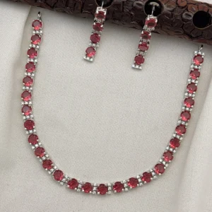 The highlight of this necklace set is its high-quality cubic zirconia (CZ) stones, also known as American diamonds. These stones are carefully cut and polished to reflect maximum light, creating a dazzling sparkle that enhances your natural beauty.