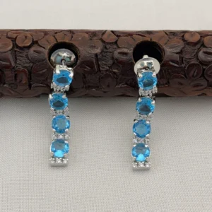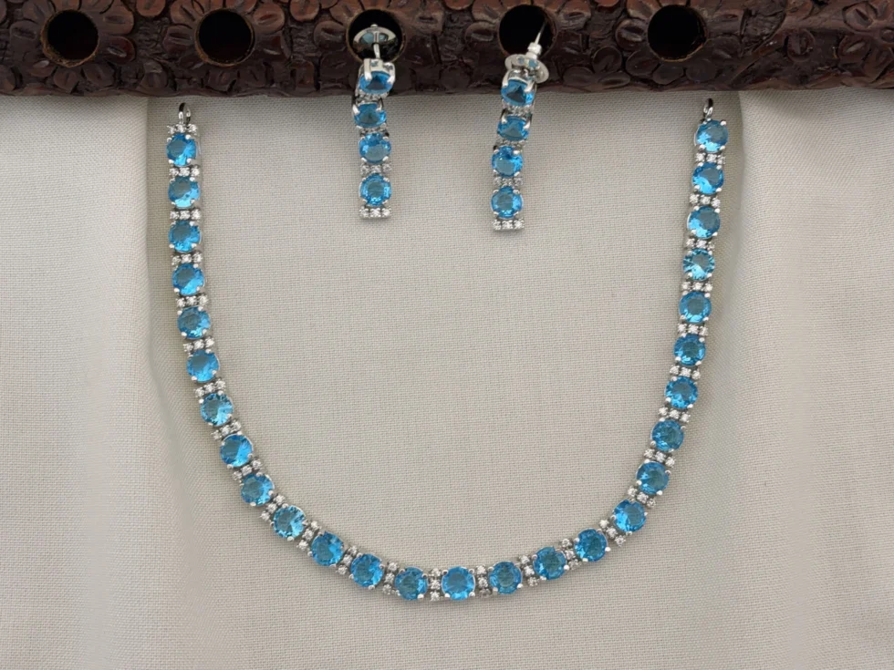 Elegant Silver Polished CZ Stone Necklace Set with Earrings for Women (Sky Blue)KJ-1102-BE.CA