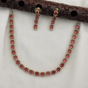 Add a touch of elegance with this Victoria Polish CZ Stone Necklace Set with Earrings from Kasim Jewellers. Featuring sparkling cubic zirconia stones and a premium antique finish, it’s perfect for weddings, parties, and festive occasions. Designed for comfort and style, this set offers a luxurious look at an affordable price.
