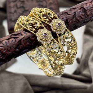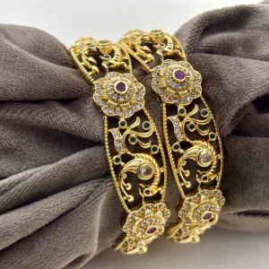 High Gold Traditional Peacock Floral Design with CZ Stone Brass Bangles – Kasim Jewellers