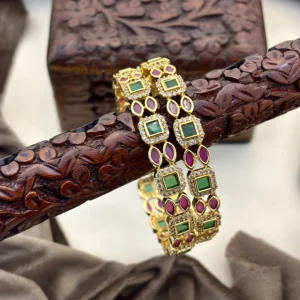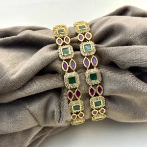 Matte Gold Traditional Bangle With Cz Stone Fully Brass Make-Kasim Jewellers