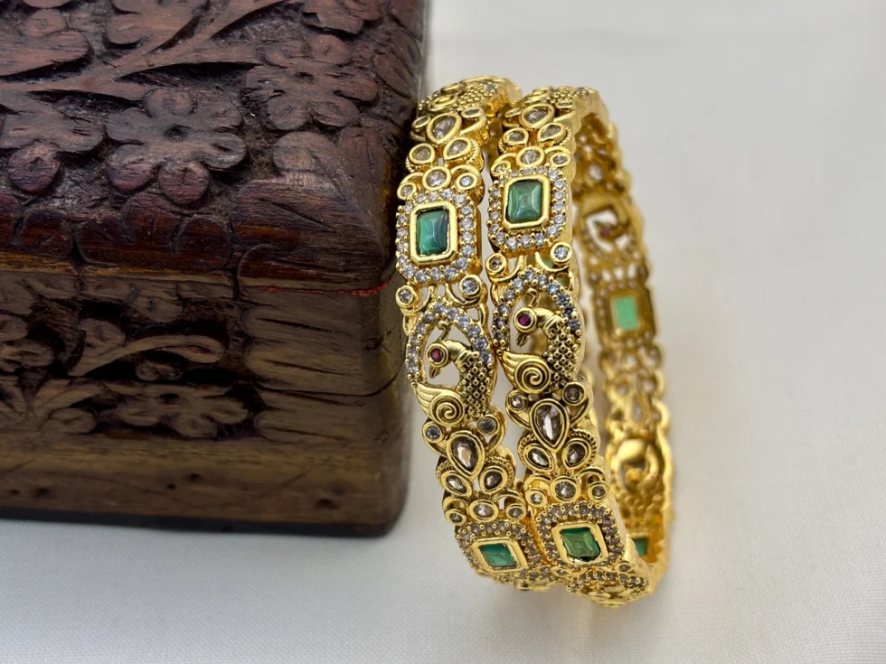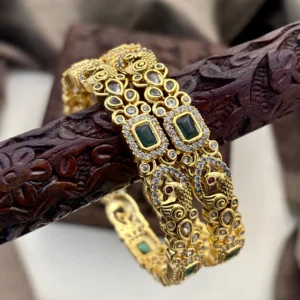 These bangles are perfect for Indian brides, festive jewellery collections, temple jewellery lovers, and ethnic wear. Beautifully handcrafted, they bring out Matte gold bangles, peacock design bangles, CZ stone bangles, Kundan stone bangles, brass bangles, bridal bangles, wedding jewellery, traditional Indian jewellery, temple jewellery, ethnic bangles, festive bangles, handcrafted bangles, designer bangles, matte finish bangles, gold finish bangles, Kasim Jewellers, Indian bridal jewellery, party wear bangles, ethnic jewellery set, traditional peacock bangles, South Indian bangles, kundan bangles design, CZ kundan jewellery, antique bangles design, Indian wedding accessories, ethnic fashion jewellery, brass gold banglesthe charm of traditional South Indian jewellery